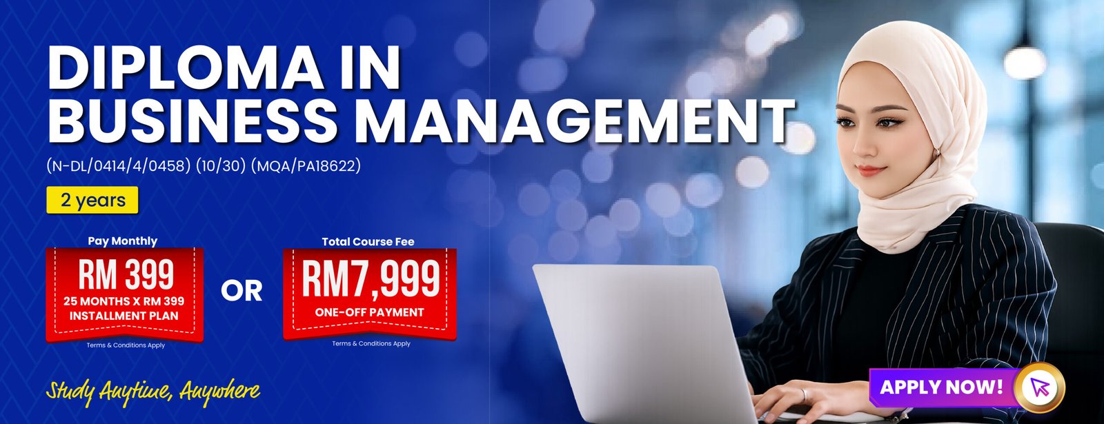 The Diploma in Business Management is designed for working adults who want to grow their careers while continuing to work. This Online Distance Learning (ODL) programme allows you to study anytime, anywhere.